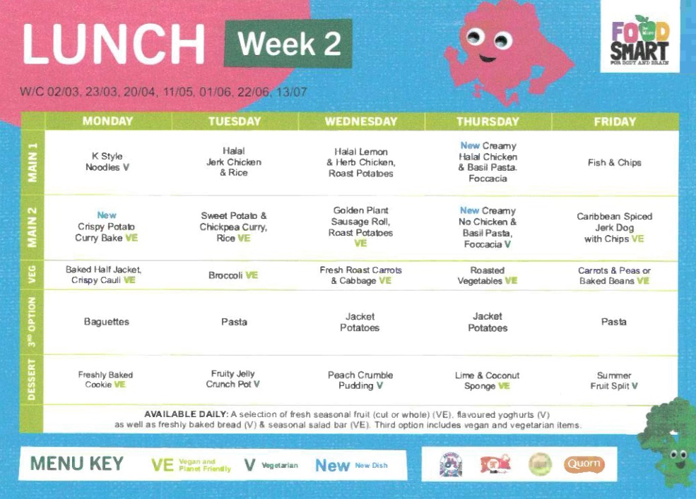 School dinners can be ordered during registration priced at £2.40 per day, meals must be paid for in advance.